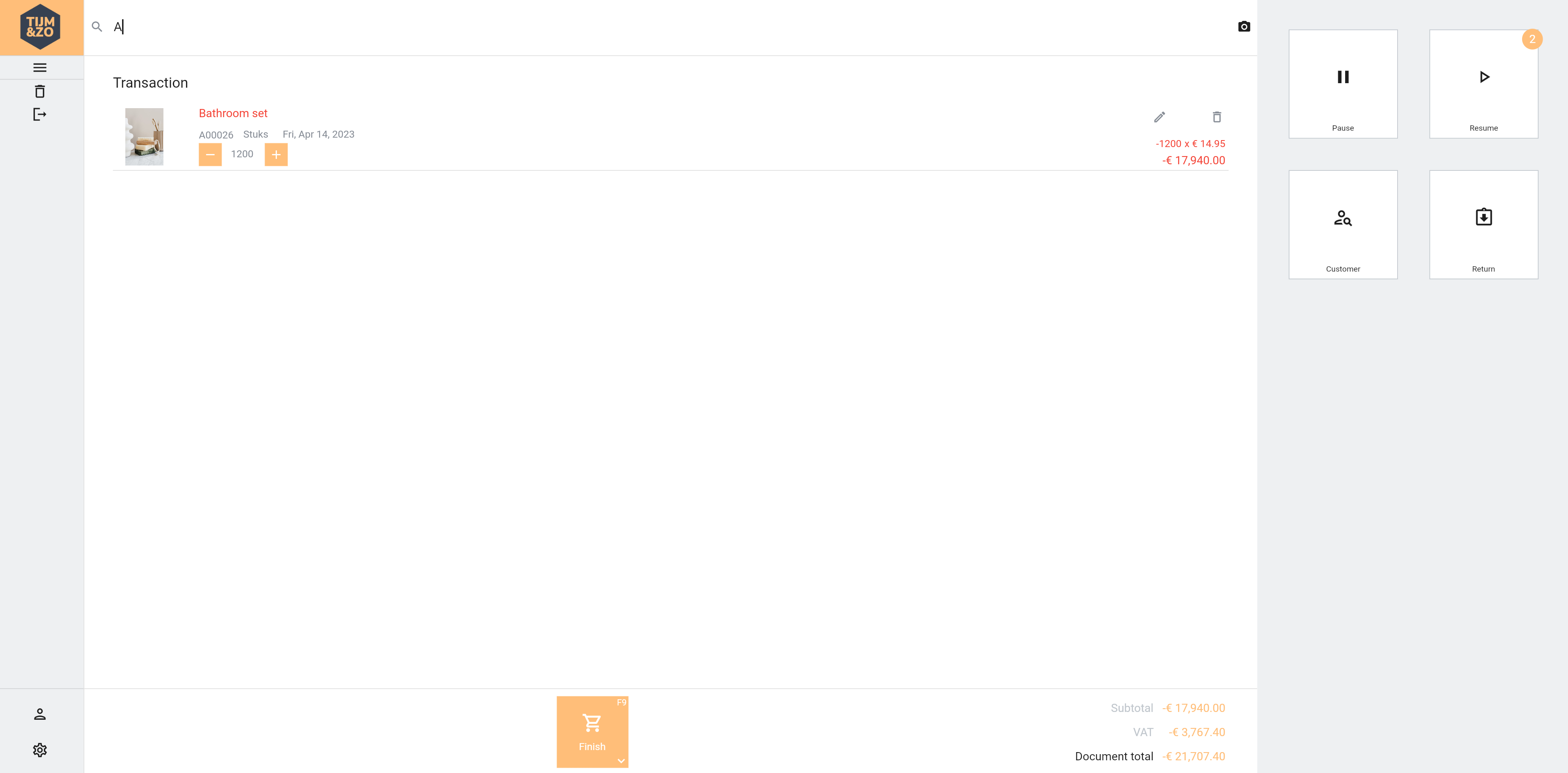 As in the item select window, you can now search for an item, switch between list or grid view and select an item category if you like. After selecting an item, the item is added to the transaction as a return item. You can check this by watching the amount, price and the line total (amount and line total should be negative and formatted in red color). See figure 2.