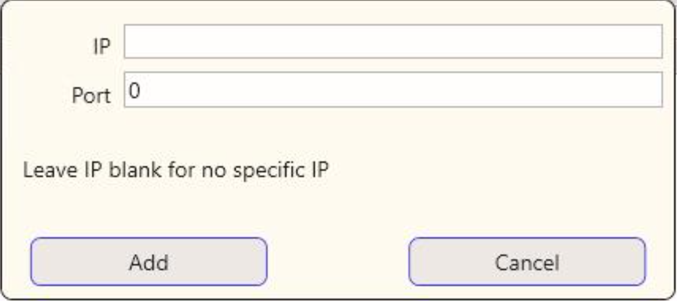 | 3 | Click "Add" to add a new IP port. ![]() | |