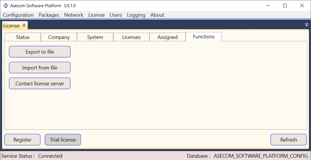 | 1 | Click the "Trial license" button to select available applications. ![]() | |
