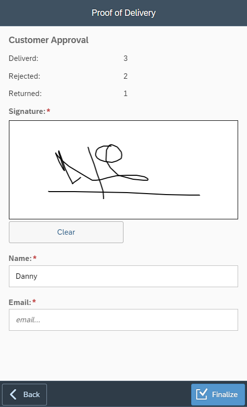 Click the Finalize button to confirm and send all data to Proof of Delivery Server for processing.