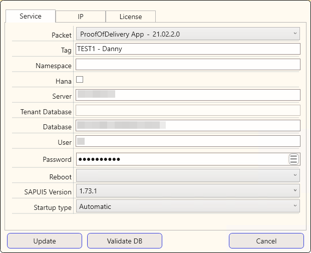 If the specified database does not exist, it will be created during setup. Do not enter the SAP Business One database name here! A separate and dedicated database must be created for the Proof of Delivery Application. |