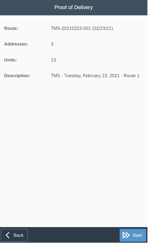 When Route Summery and Task List are not activated in menu Config > Functional Settings > Overview this screen will be skipped.