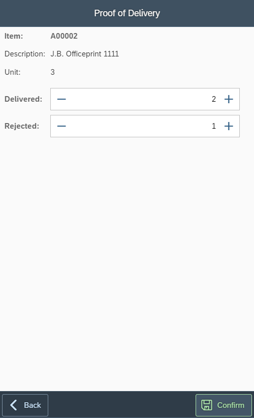Specify the quantity to Confirm or Reject by clicking the + or - icons.