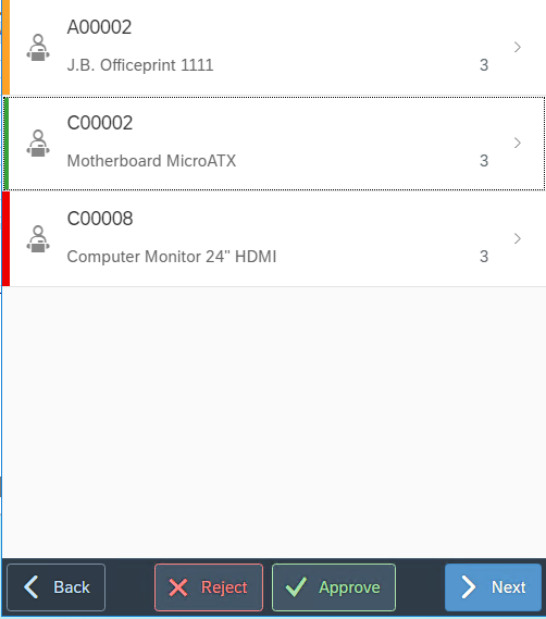 After confirming / rejecting Items in the Items screen, there will be different colors presented.