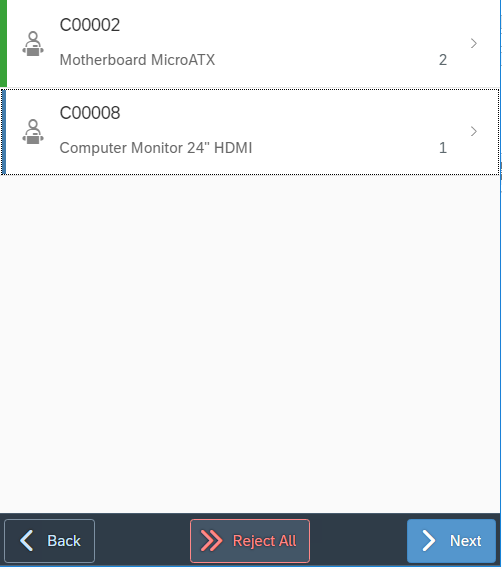 When Items were rejected, there will be a list displayed from where each rejected item must be confirmed and reasons must be specified.
