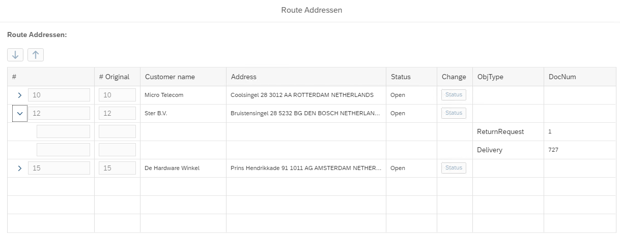 The Edit Document button can be used to see the content of the route (documents and addresses). and depending on the status (Open, Released), the addresses can be re-arranged.
