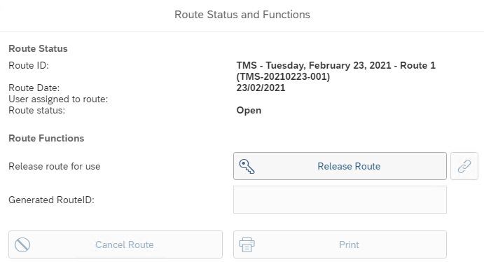 The Print button is only active on routes with status Released.