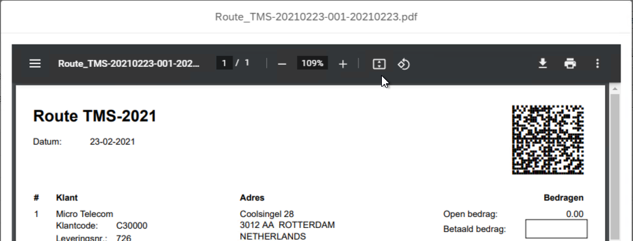 This document can hold a Datamatrix Code or QR Code to access the URL more easily from a mobile device. Crystal Reports Barcode objects are not integrated with the Proof of Delivery App and must be purchased seperately from a supplier of your choice.