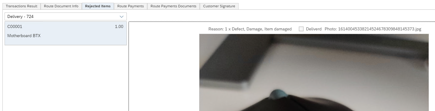 Displays the original and collected data of the documents in the route stop. Select the relevant document from the Document drop-down list.