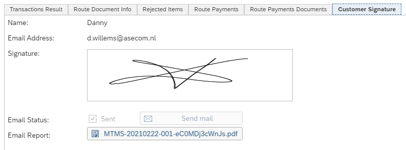 The Name, Email Address and Signature were entered manually at delivery in Proof of Delivery application.