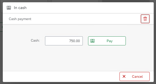 When adding "In Cash" payments, simply edit the amount to be paid. By default, the field is prefilled with the Downpayment amount or the total remaining amount to pay.