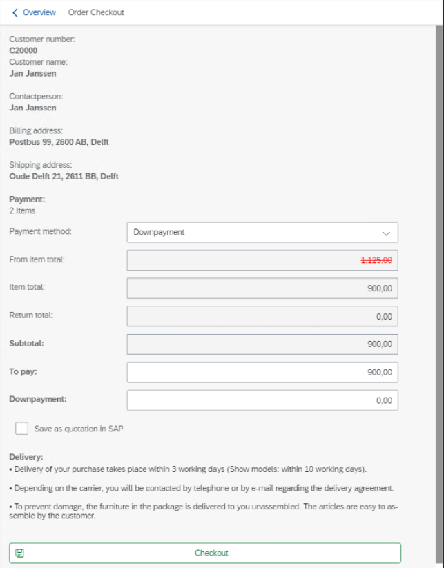 Payment method (Full prepayment, downpayment, Payment afterwards).