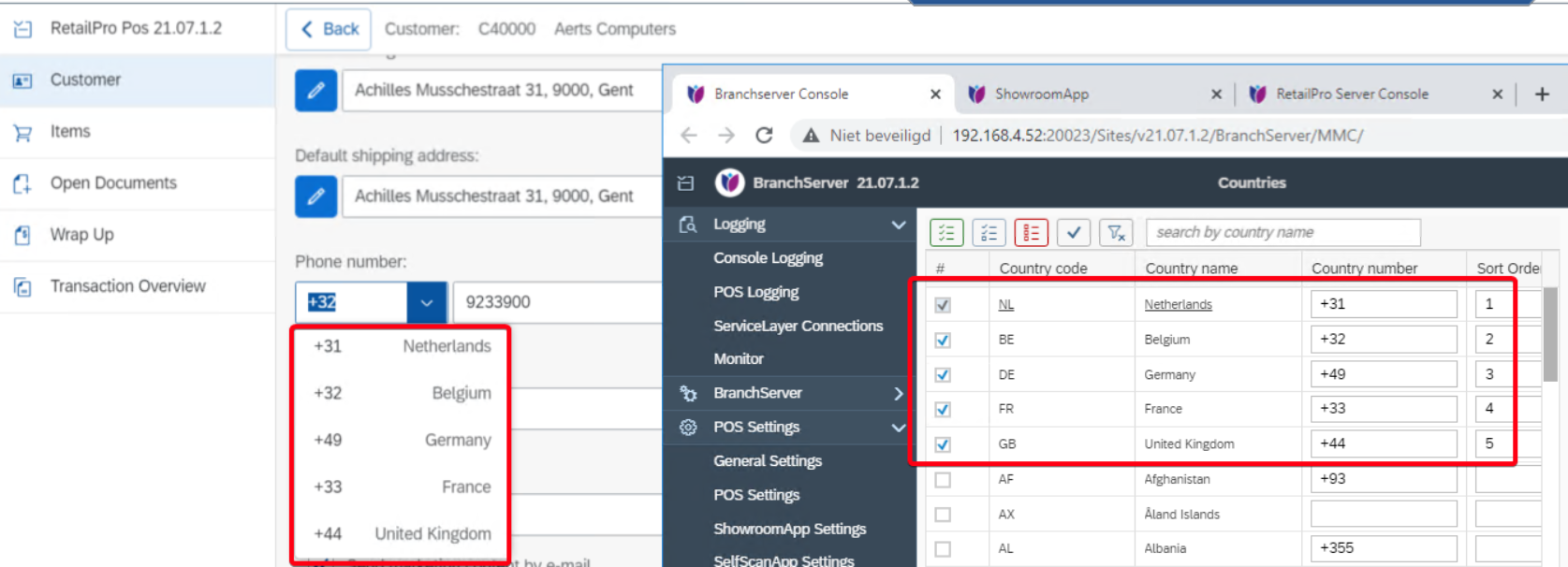 Configure the countries that can be used in the Point of Sale and ShowroomApp.