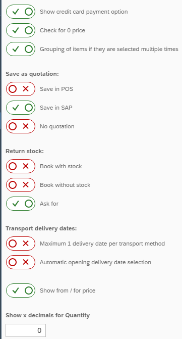 Show x decimals for Quantity Enter the decimals for Quantity that will be showed in the Point of Sale, ShowroomApp and Self-Scan App.