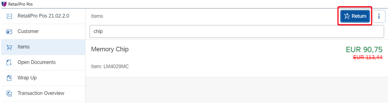 When items need to be returned, you can click on the Return button before adding the item(s) on the receipt screen.