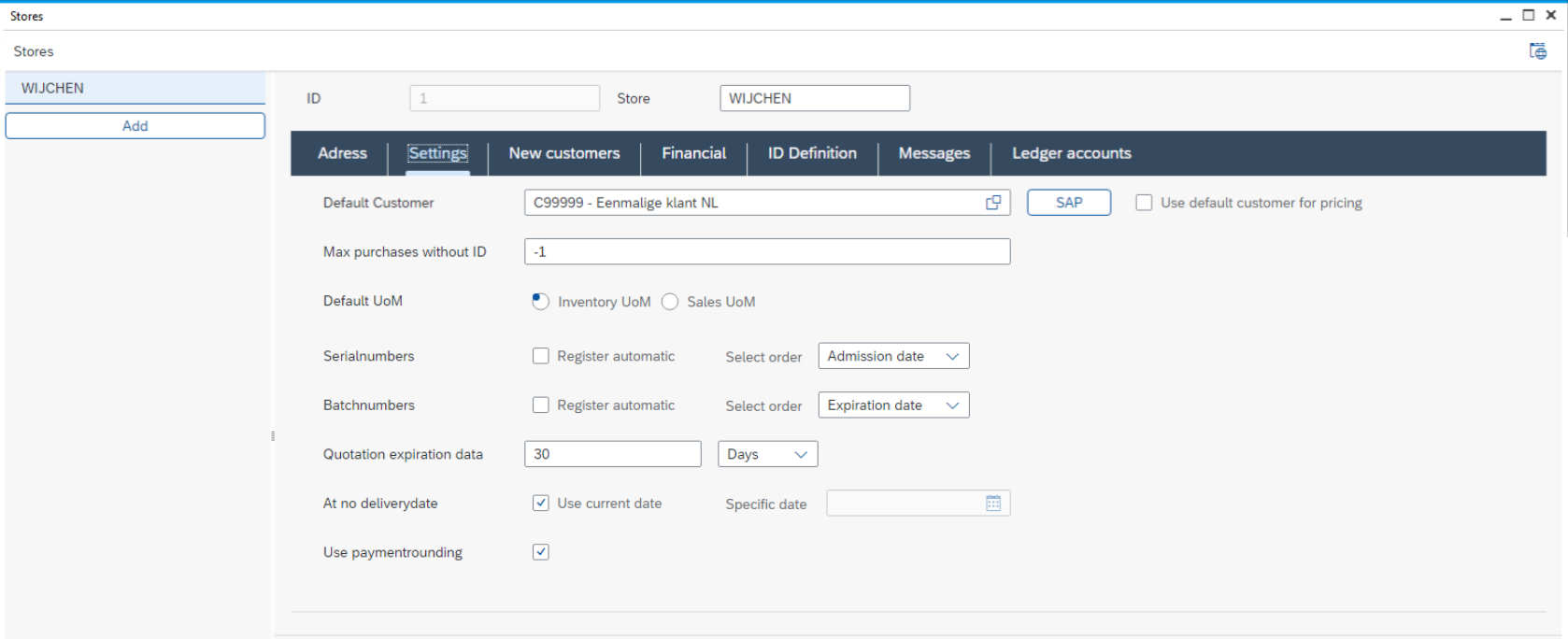 Configurations for Store ID, Branchserver ID and POS ID are irreversible.