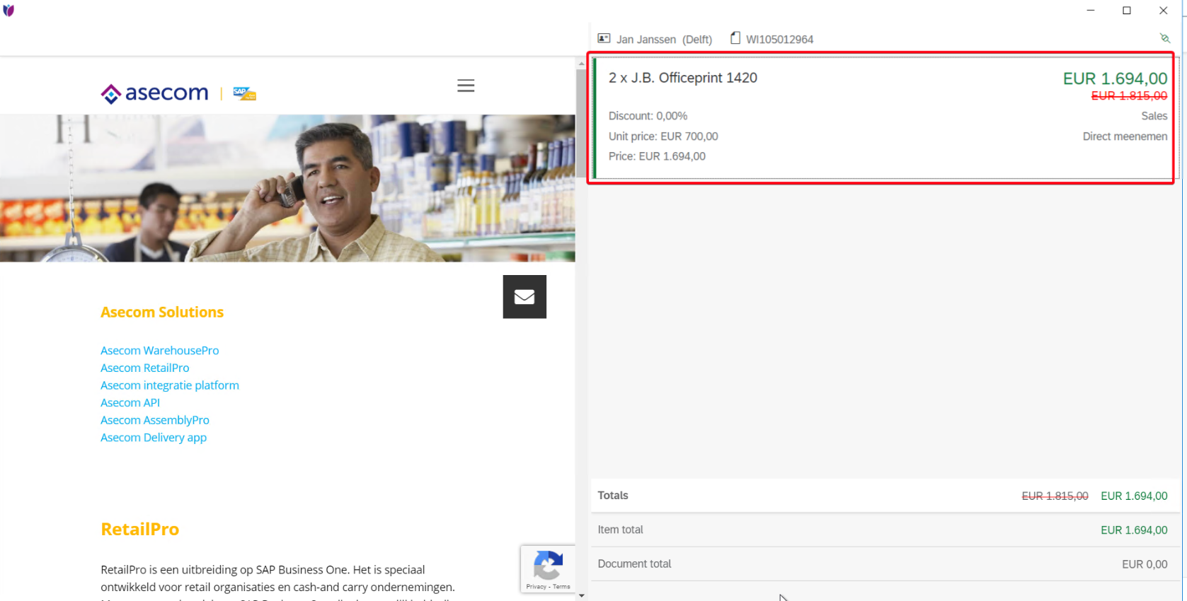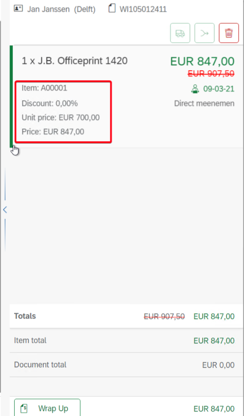 The cashreceipt can be found on the right site of the screen (Wrap-Up).