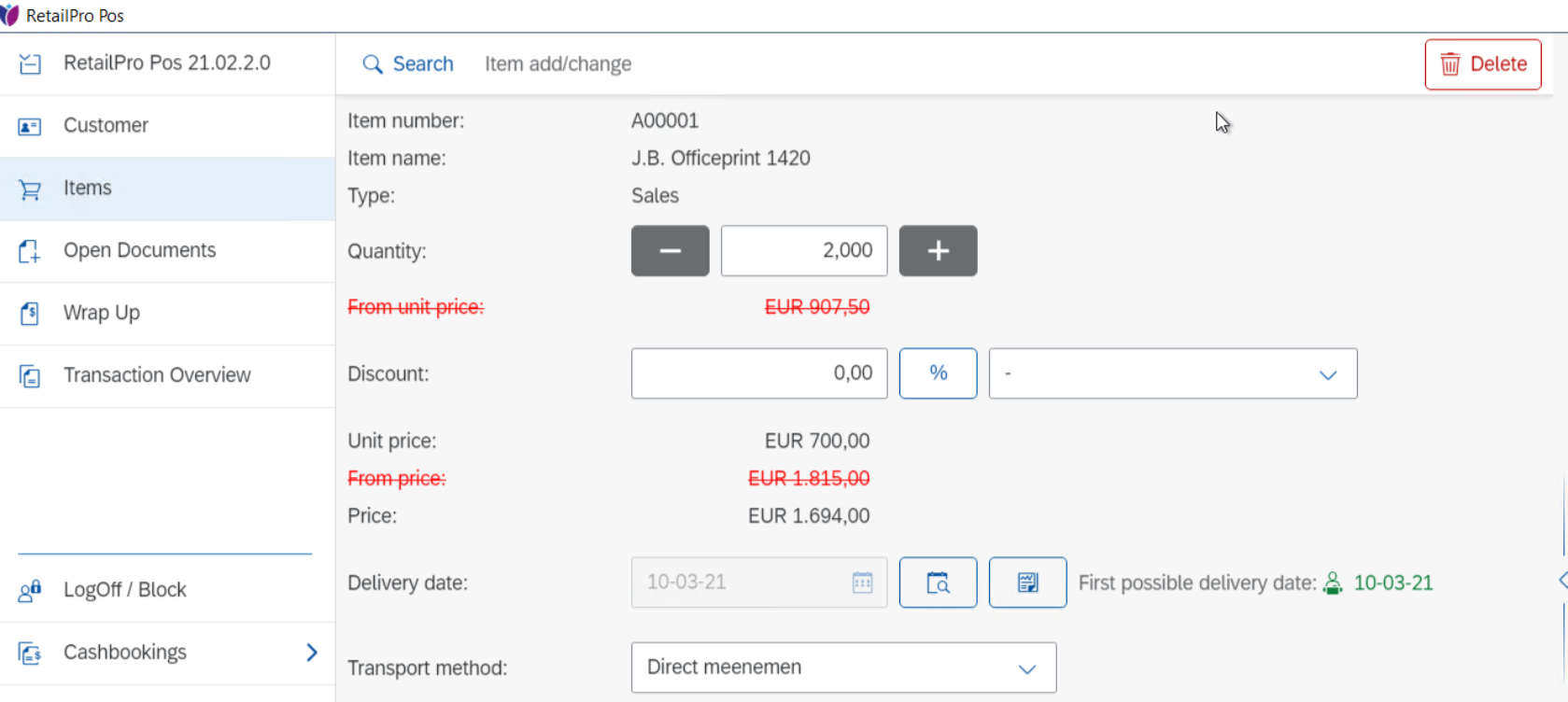 Show customer screen When activated, the screen of the customer at (the other side of) the counter can be configured, with(out) border or Full screen. Open customer screen for the suitable format.