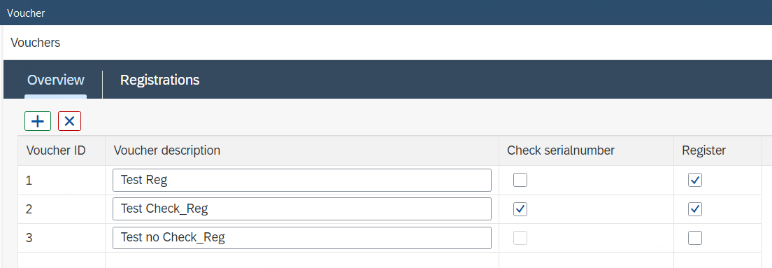 If Check serialnumber and Registration are both check marked, a unique serial number and a value need to be predefined on tab Registrations.