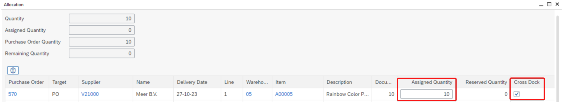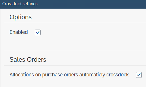 When Allocating on purchase orders automatically crossdock is enabled, allocated purchase orders will be automatically crossdocked.