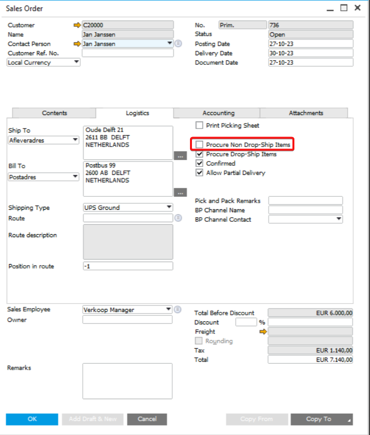 Manual: Allocations can be made manually from the customer order, see pictures below. In this case, the crossdock from the allocation of the purchase order can be manual enabled at the purchase order allocation screen.