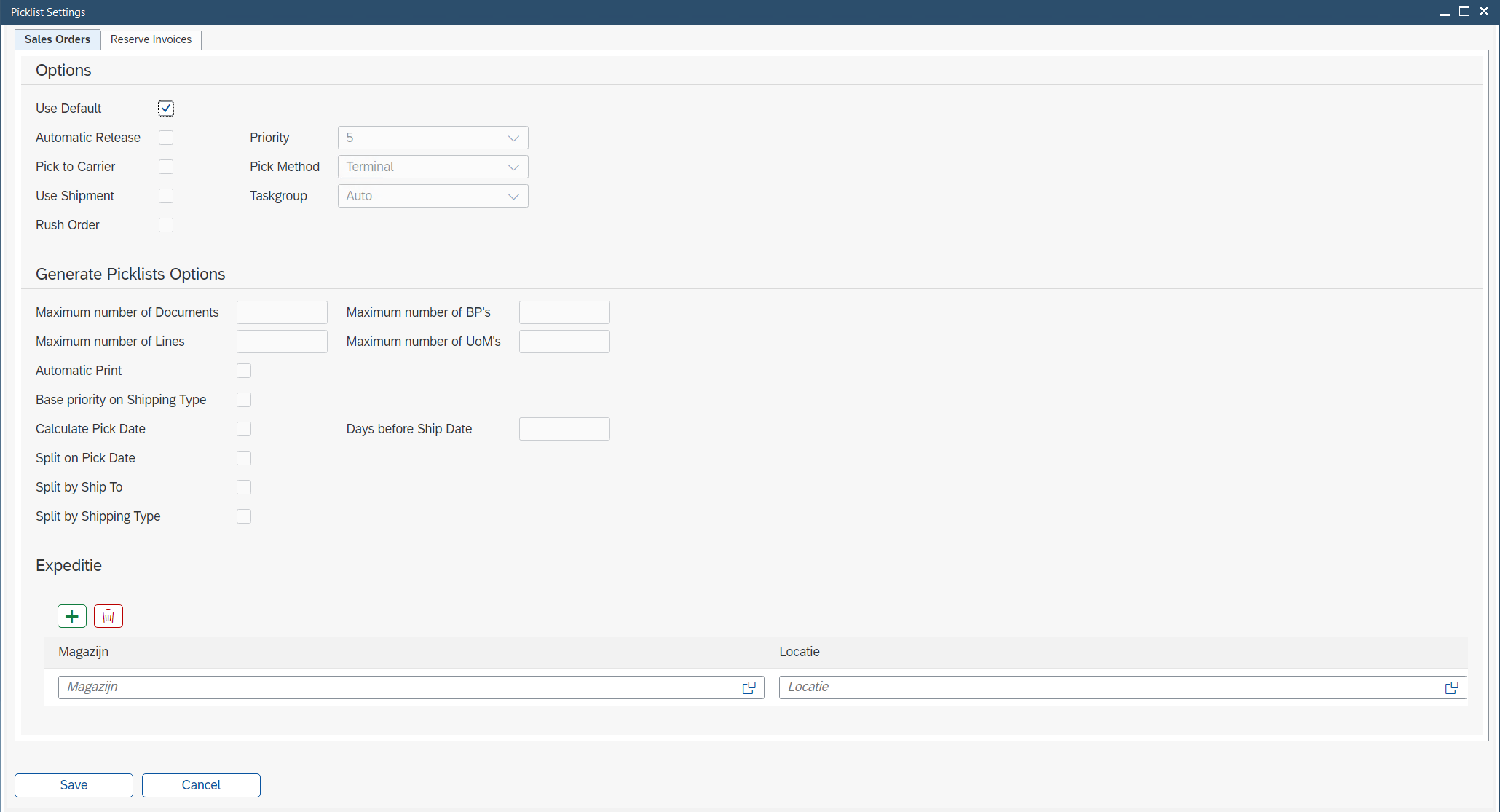 For crossdocking, you can set up specific picklist settings for Sales orders and Reserve Invoices.