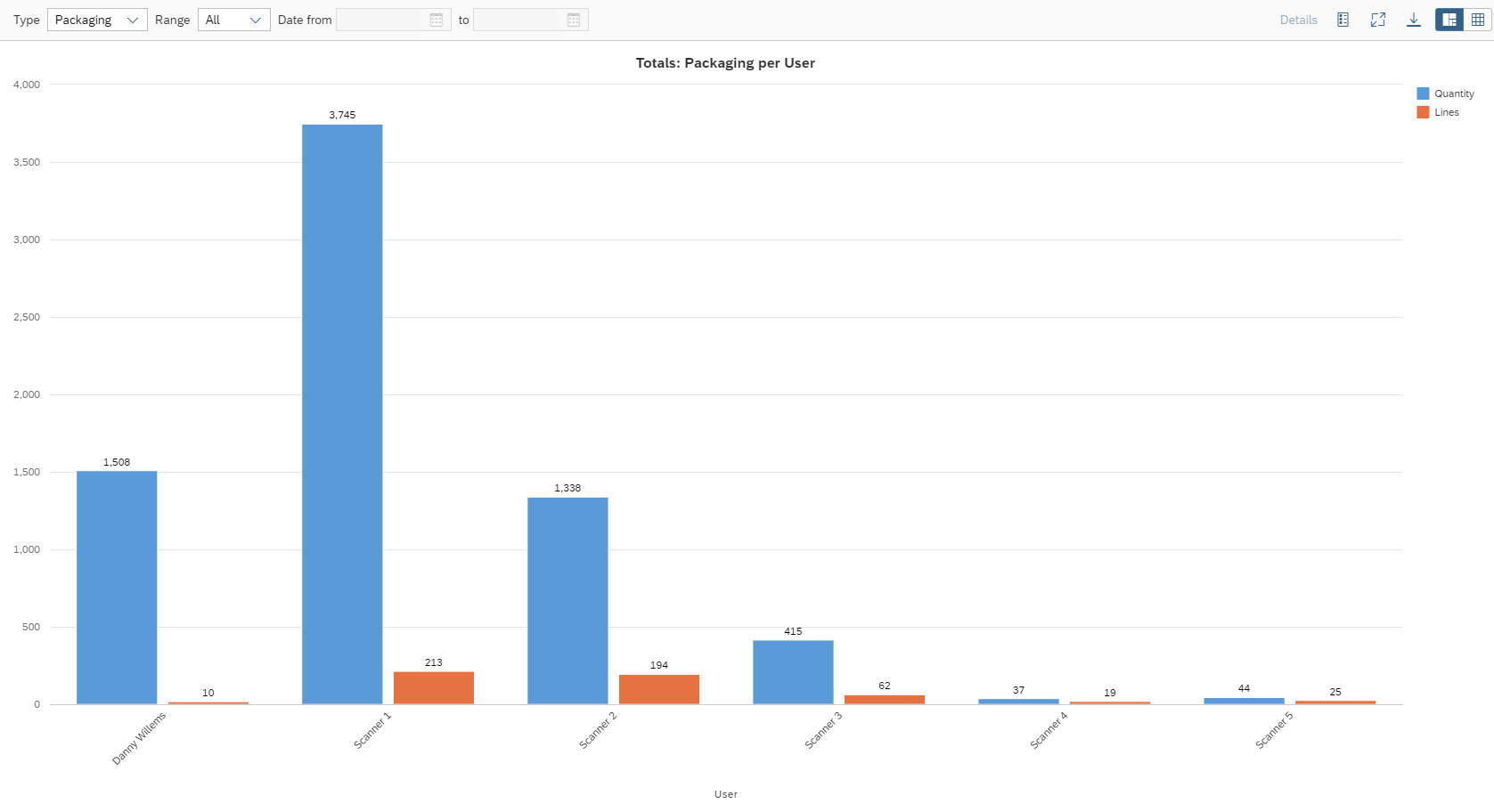 Number of lines picked(currentweek vs last2 weeks) This graph shows the number of pickedlines per day in the week and compares this with the previous 2 weeks. Via the Holiday calendar of SAP Business One (Administration> System Initialization > Company Details: Accounting Data tab) it can be determined which days are designated as a weekend and thus hidden in the dashboard.
