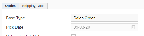 Determine for which Base Type of document picking lists will be generated (filters may be reset after changing this selection).