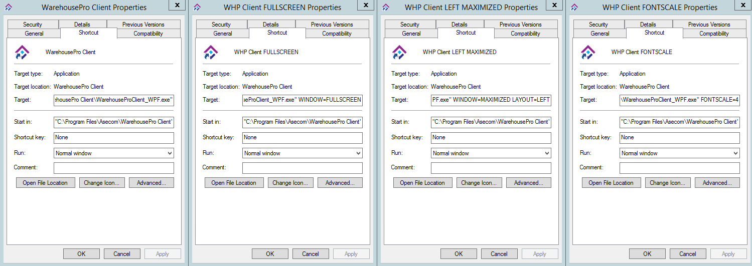 | 3 | Use the instructions in the file "Command_Line.docx" to create the required shortcut for the client application startup (for example these settings can be used to start the application in full screen mode and also font size can be changed). | |