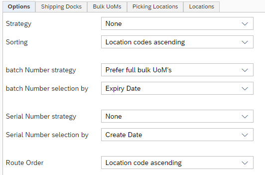 Under the Options tab of the strategy, it is determined per item type (with/without batch or serial numbers) what the "strategy" for the relevant type will be.