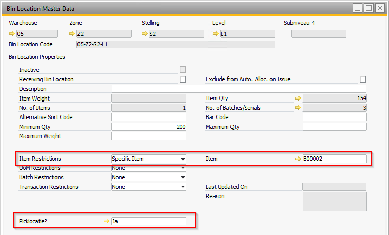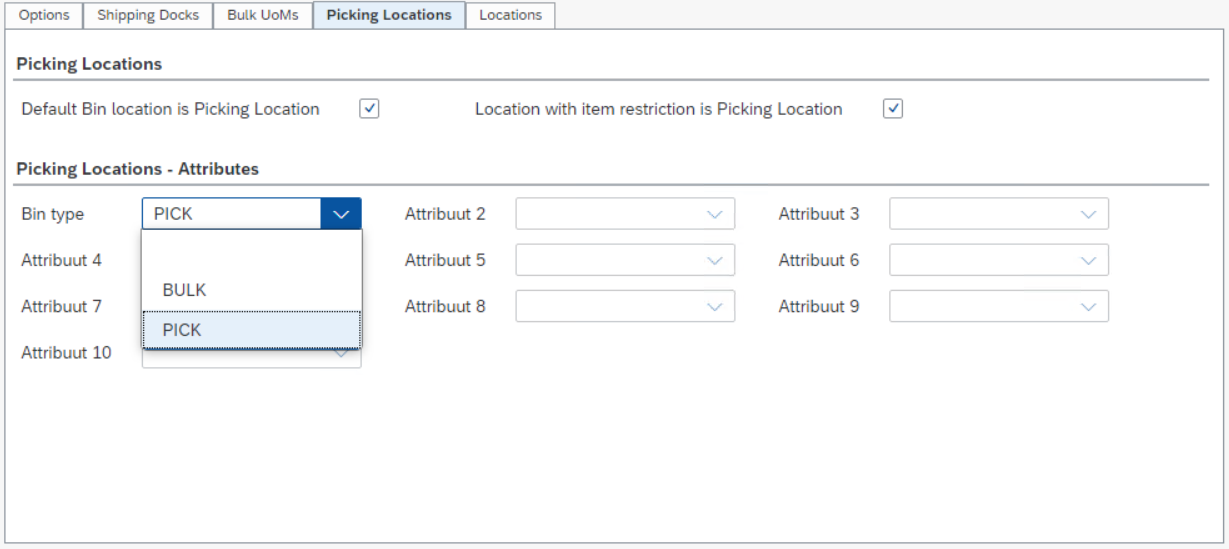 To distinguish bulk locations from picking locations, characteristics must be determined for this. There is no specific attribute for this in the SAP Business One Warehouse Location Master data. WarehousePro offers the possibility to use the following data.