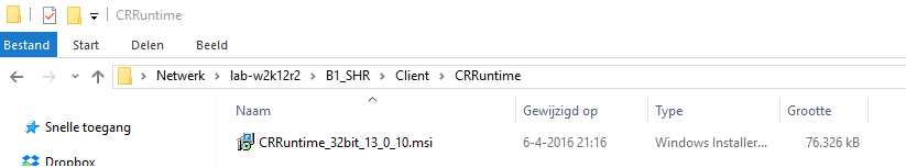 | 3 | Installation files can be found in SAP Business One’s B1_SHR or B1_SHF shared folder. Use the CRRuntime folder in “Client.x64” (or “Client” when using 10.0)). This step can be skipped when SAP Business One Client (64 bits) is already installed. | ![]() |