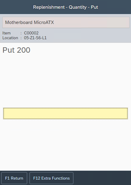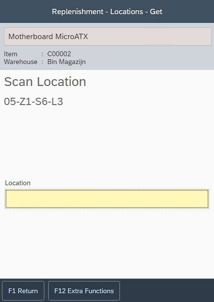 It is advised to keep replenishment tasks as small as possible. The user should be able to pickup all items in the task in a single action, so that the transactions can be registered directly.