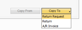 From this status "Open" a return request can be made by using the "Copy To" button.