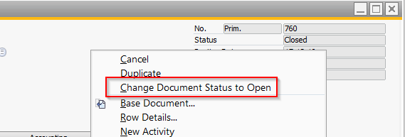 It is possible to base a Return Request on an Outgoing invoice in SAP Business One. However, this is only possible if the invoice still has the status “Open”. If the invoice has already been paid, it will be closed and there fore not available for copying to a Return Request. In this case you must first use the "Change Document Status to Open" option.