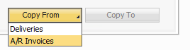 It is also possible to first start a new Return Request for the relevant customer. Next, a wizard can be started via the "Copy From" button to copy the desired data from this document (or several).