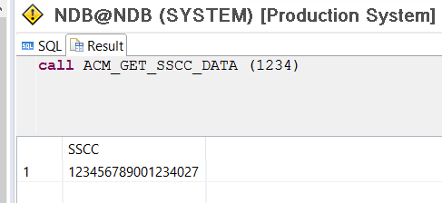 exec ACM_GET_SSCC_DATA 1234