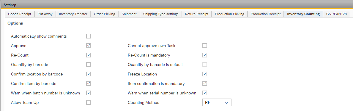 In the Options tab some options for the Inventory Counting tasks can be set.