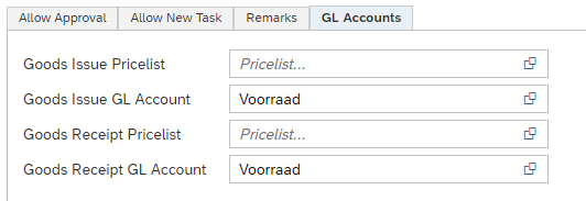 Under the tab GL Accounts it can be specified which specific price list or ledger account should be used for the correction entries.
