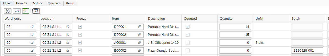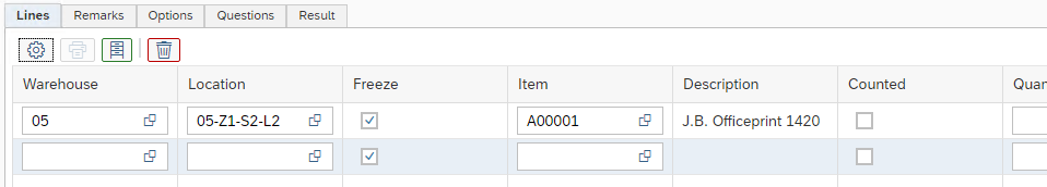 In practice, an inventory task that will be handled via SAP Business One will be a task where specific items must be counted at locations. This task will also be printed on which the counted values can be recorded.