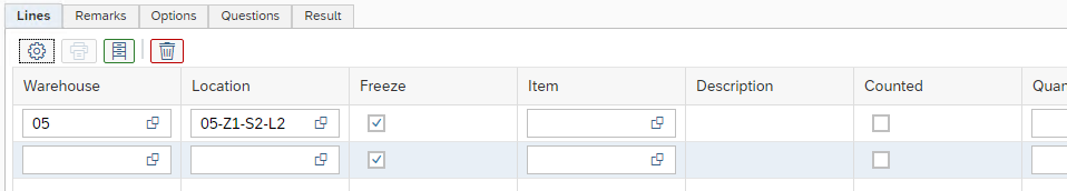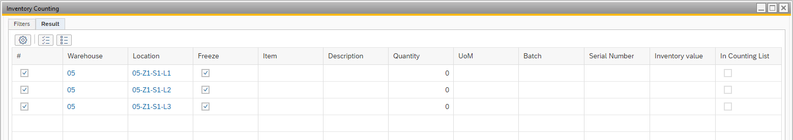 Only add used locations having inventory When enabled a location that does not hold stock according to SAP Business One data will not be included in the counting task.