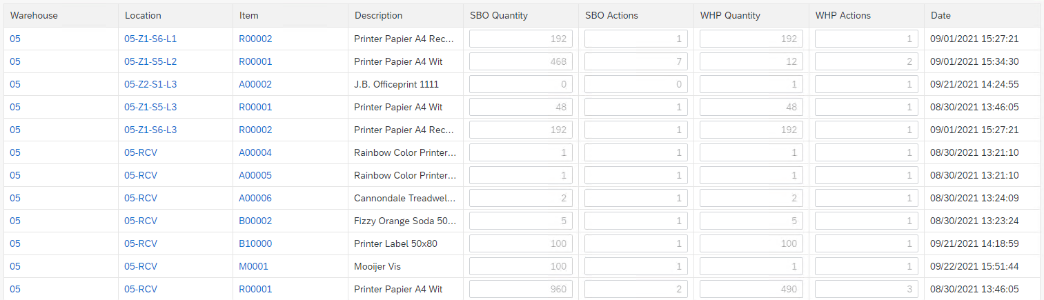 A WarehousePro inventory inventory can be handled both via SAP Business One and via the WarehousePro client. Both methods result in a result in a list of differences.