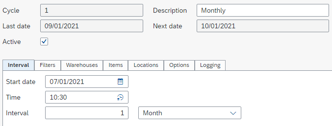 First specify the interval. Select the Start date and Time to execute the cycle.