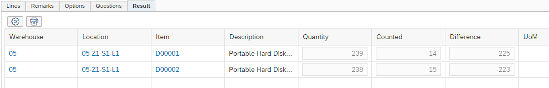 Depending on the difference (positive or negative), a Goods Issue or Goods Receipt will be created in SAP Business One.