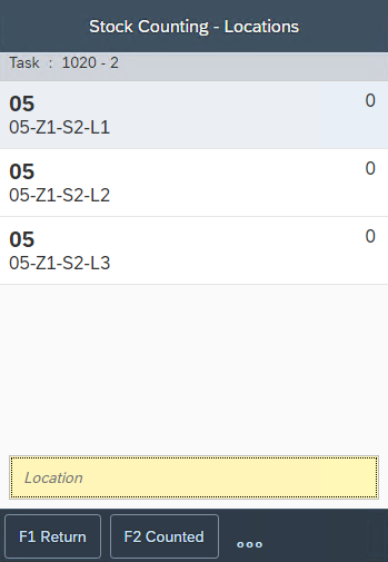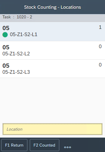 Empty locations should also be marked as Counted. This can be done by opening the location and jumping out again or by directly clicking the Counted button when the location is highlighted.